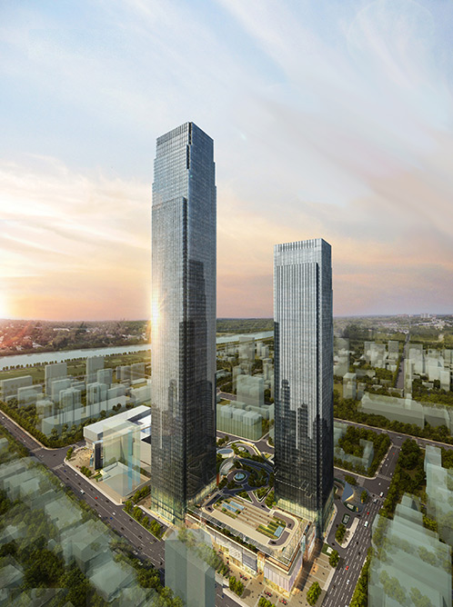 Ä»Ç½Ãæ»ý£º300,000m2 ĻǽÀàÐÍ£º´ó¿ç¶ÈµÄµõ¸Ë¿ò¼Üʽ²£Á§Ä»Ç½